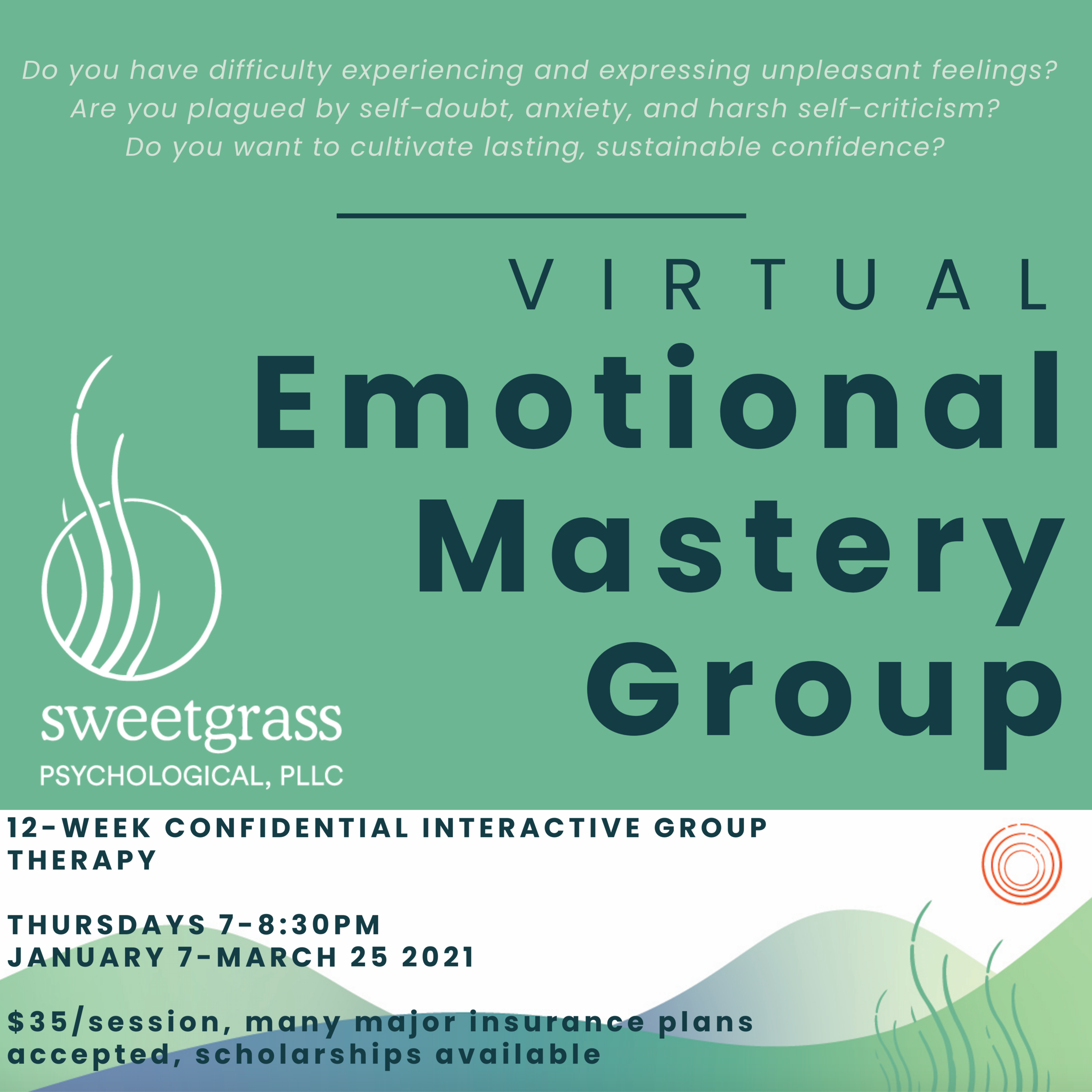Join us, this January for a deep dive into your emotional life to emerge with greater skills to manage more effectively, strengthen your connection to yourself and others, and find new ways to address old problems and patterns.